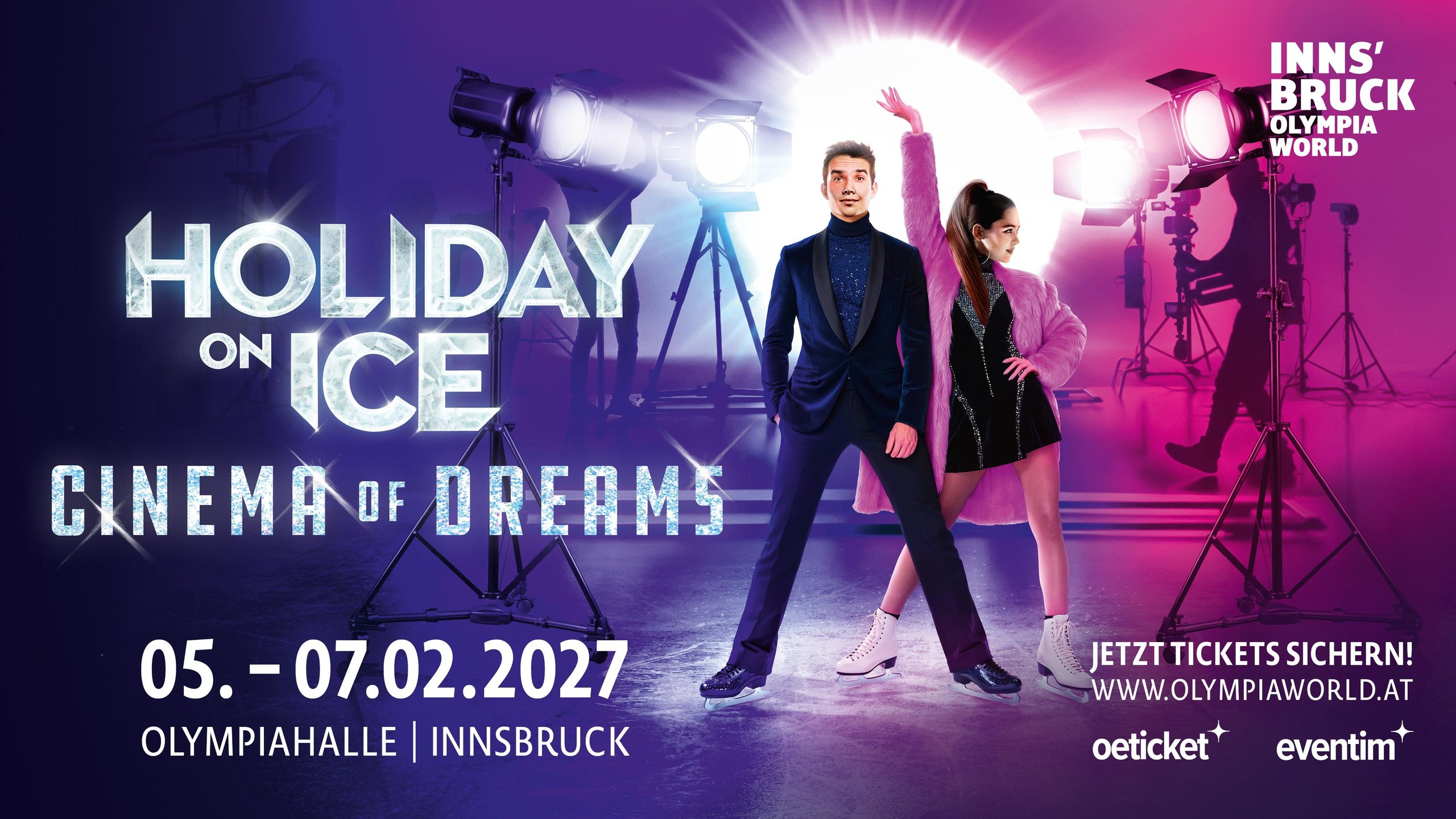 Con CINEMA OF DREAMS, HOLIDAY ON ICE scrive il prossimo capitolo dello spettacolo sul ghiaccio di maggior successo al mondo! Ispirato ai grandi successi hollywoodiani, il nuovo spettacolo racconta una storia avvincente sull'amicizia, la fantasia e il coraggio di sognare. Pattinaggio artistico mozzafiato, scenografie opulente e una colonna sonora ricca di emozioni si fondono in un'esperienza dal vivo indimenticabile.